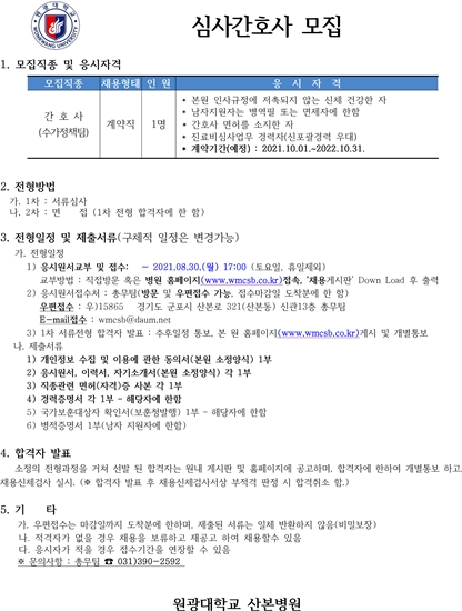 원광대산본병원 심사간호사(계약직)채용안내