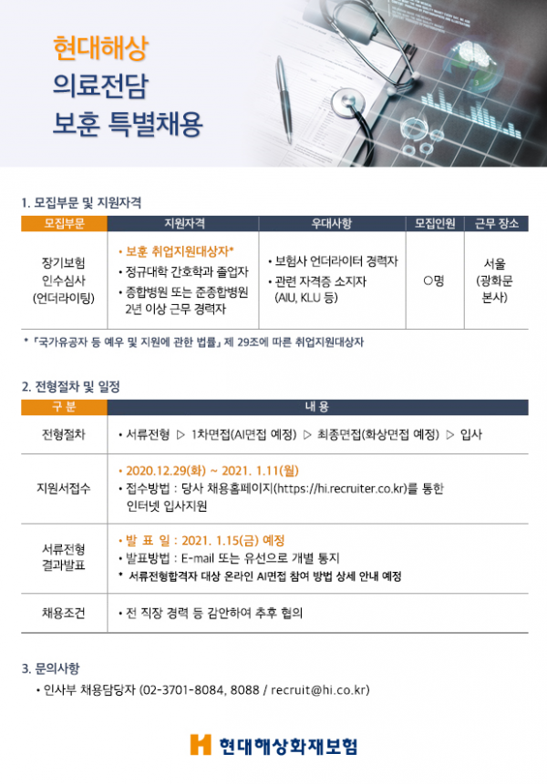 [현대해상화재보험] 장기심사 의료전담 보훈 특별채용